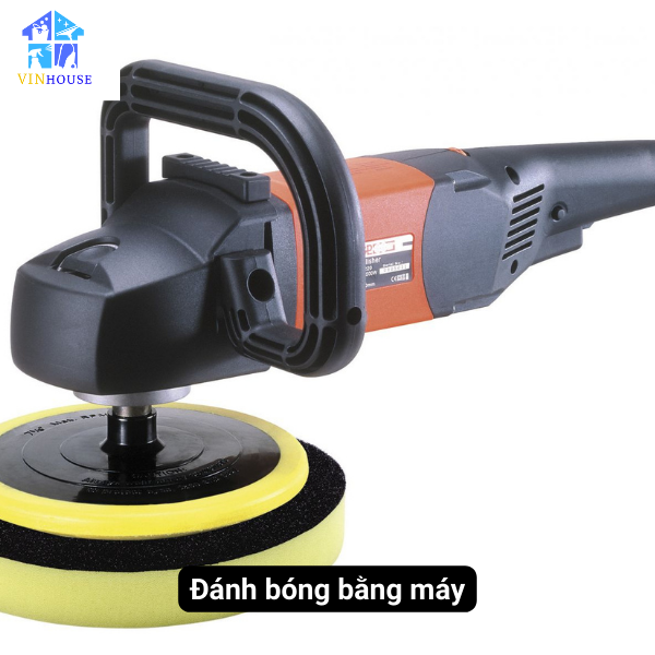 Bước 1 (Chuẩn bị): Các nhân viên Vinhouse kiểm tra đồ đạc chuyên dụng gồm các máy móc, thiết bị (máy mài tạ từ 80–>100kg, máy hút bụi, máy hút nước; máy mài cầm tay, máy kiểm tra độ bóng đá Marble v.v…); dụng cụ; hóa chất keo trét ron, phủ bóng và chống thấm, v.v…;