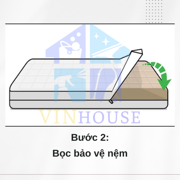 Sau khi hoàn tất bước 1, tiến hành tháo vỏ Đệm và tấm bảo vệ đệm ra khỏi đệm rồi mang đi vệ sinh.