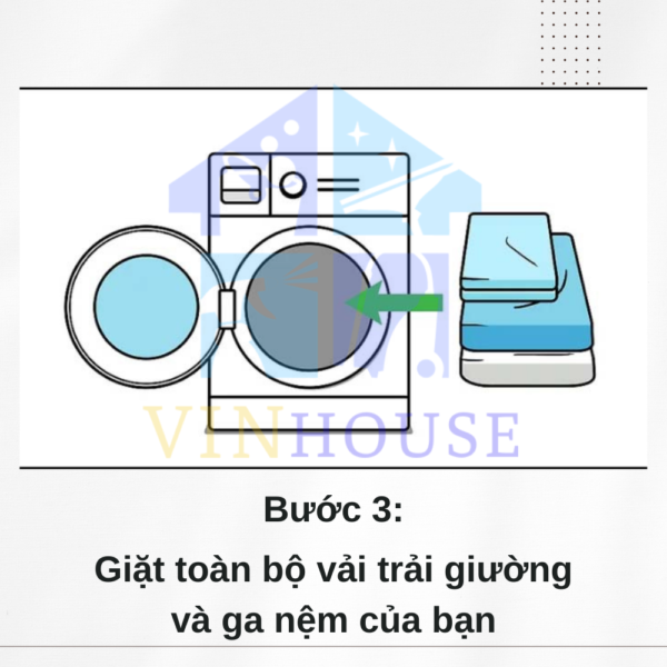 Bước 3: Giặt toàn bộ ga trải giường và vỏ đệm