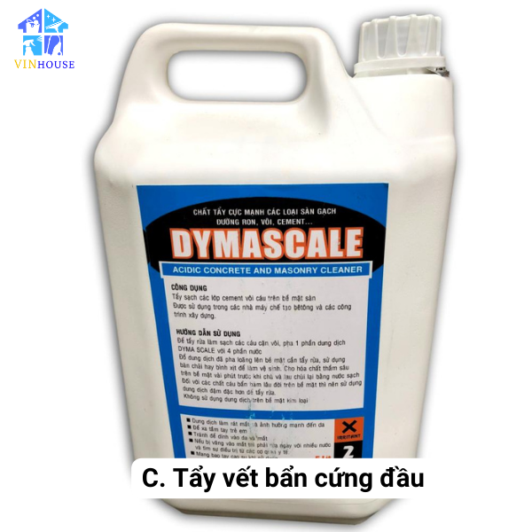 Các vết bẩn cứng đầu như vết bánh xe, vết mực bút bi, vết sơn,… đòi hỏi việc sử dụng các chất tẩy rửa chuyên dụng. Bạn nên ngâm một lớp mỏng chất tẩy lên vết bẩn, để tác động trong vài phút rồi dùng bàn chải chuyên dụng cọ rửa. Nếu vẫn còn vết bẩn, có thể ngâm lại lần 2 với thời gian tác động lâu hơn. Sau khi vết bẩn đã được loại bỏ hoàn toàn, nhớ xả sạch bằng nước.