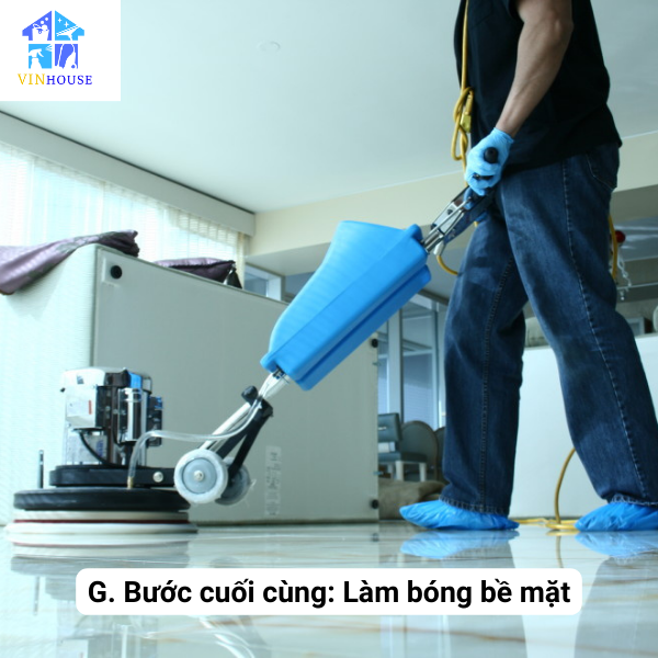 Sau khi đã làm sạch triệt để, bạn có thể sử dụng máy đánh bóng chuyên dụng để tạo lớp sáng bóng cho nền đá. Hoặc có thể dùng dung dịch bóng gốc silicon thoa đều lên bề mặt, chờ khô rồi lau sạch bằng khăn. Như vậy, quy trình làm sạch nền đá đã hoàn thành. Nếu thực hiện đều đặn, bạn sẽ có một lớp nền đá sáng bóng như mới.