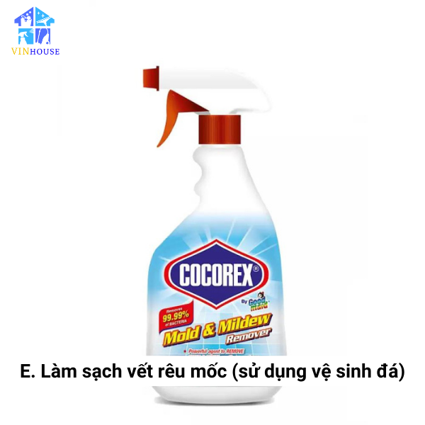 E. Làm sạch vết rêu mốc (sử dụng vệ sinh đá)